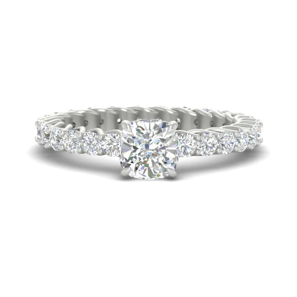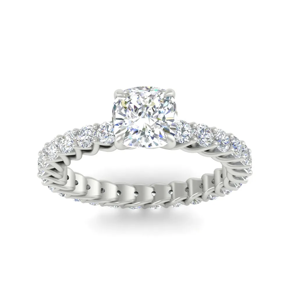 This modern engagement ring features a 2.00 ct cushion-cut IGI-certified lab-created diamond set in solid platinum with a hidden halo and pave band. Ethically sourced, conflict-free, and designed for brilliance with eco-conscious luxury.
